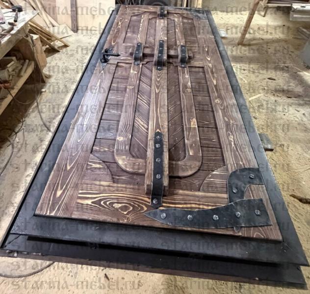 Двери из металла с деревянными накладками Оплот М
